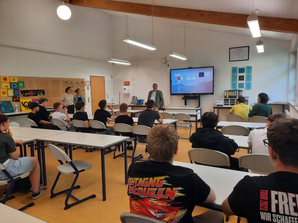 Klassenfahrt nach Berlin — Besuch im Deutschen Bundestag und Fahrtkostenzuschuss des Bundestages – Bei der Planung der Klassenfahrt nach Berlin wurde uns von unterschiedlichen Stellen berichtet, dass wir über den Wahlkreisabgeordneten eventuell einen Besuch im Deutschen Bundestag organsiert bekommen könnten. Kurzerhand schrieben daraufhin die Klassenlehrerinnen Frau Bretz und Frau Meissner an unseren Korschenbroicher Bürgermeister Herrn Venten, der uns direkt antwortete und unser Anliegen an Herrn Heveling weiterleitete. So nahm alles seinen Lauf: Telefonate mit dem Wahlkreisbüro und dann wurde uns mitgeteilt: Das kriegen wir hin! Uns wurde ein Termin im Bundestag mit Vortrag und Kuppelbeblick organisiert und zudem beteiligte sich der Bundestag auch noch an den Fahrtkosten unserer Klassenfahrt. Aufgrund des Gedenktages am 8. Mai konnte das Gespräch mit Herrn Heveling nicht im Bundestag stattfinden. Dafür wurde dies nach der Klassenfahrt nachgeholt und wir sind uns sicher: Das war richtig so, denn so wurde es viel persönlicher! Herr Heveling besuchte uns in der Schule. Vier Schüler führten ihn und seine Mitarbeiterin des Wahlkreises durch die Schule. Danach zeigten wir Herrn Heveling eine Fotopräsentation unserer Berlin-Klassenfahrt. Dann kam das Highlight: Die Klassen 10 A und B hatten Fragen vorbereitet, die sie alle Herrn Heveling stellen durften. Dieses Gespräch war kein einfaches Frage/Antwort Spiel, sondern es entstand ein sehr informatives, interessantes und persönliches Gespräch. So erfuhren wir zum Beispiel, dass Herr Heveling einen echten Freund im Bundestag hat, den er schon seit der Jugend kennt, von seiner Frau gelernt hat, dass Hunde tolle Haustiere und unverzichtbar sind und dass er keinen eigenen Chauffeur hat. Lieber Herr Heveling, vielen Dank für die Unterstützung unserer Klassenfahrt!!! Durch die Bezuschussung konnten wir unsere komplette Abschlussfeier organisieren und es musste kein Geld mehr eingesammelt werden!!! Ihre Klassen 10 A und 10 B credit: N. Meissner, K. Bretz