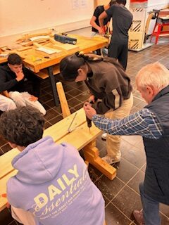 In unserer Projektwerkstatt fördern wir Schülerinnen und Schüler im handwerklichen Arbeiten mit Holz. Dabei lernen sie den sicheren Umgang mit Werkzeugen und Maschinen, sowie wichtige Fähigkeiten wie Genauigkeit, Sorgfalt, Ordnung am Arbeitsplatz und technisches Verständnis.