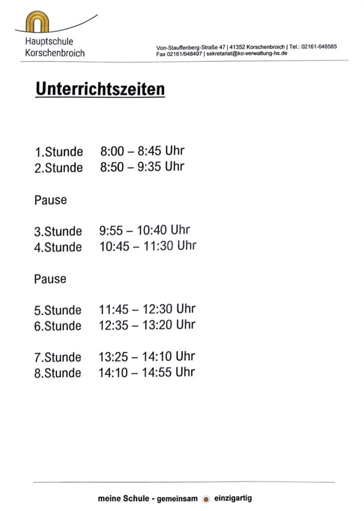 Unterrichtszeiten
